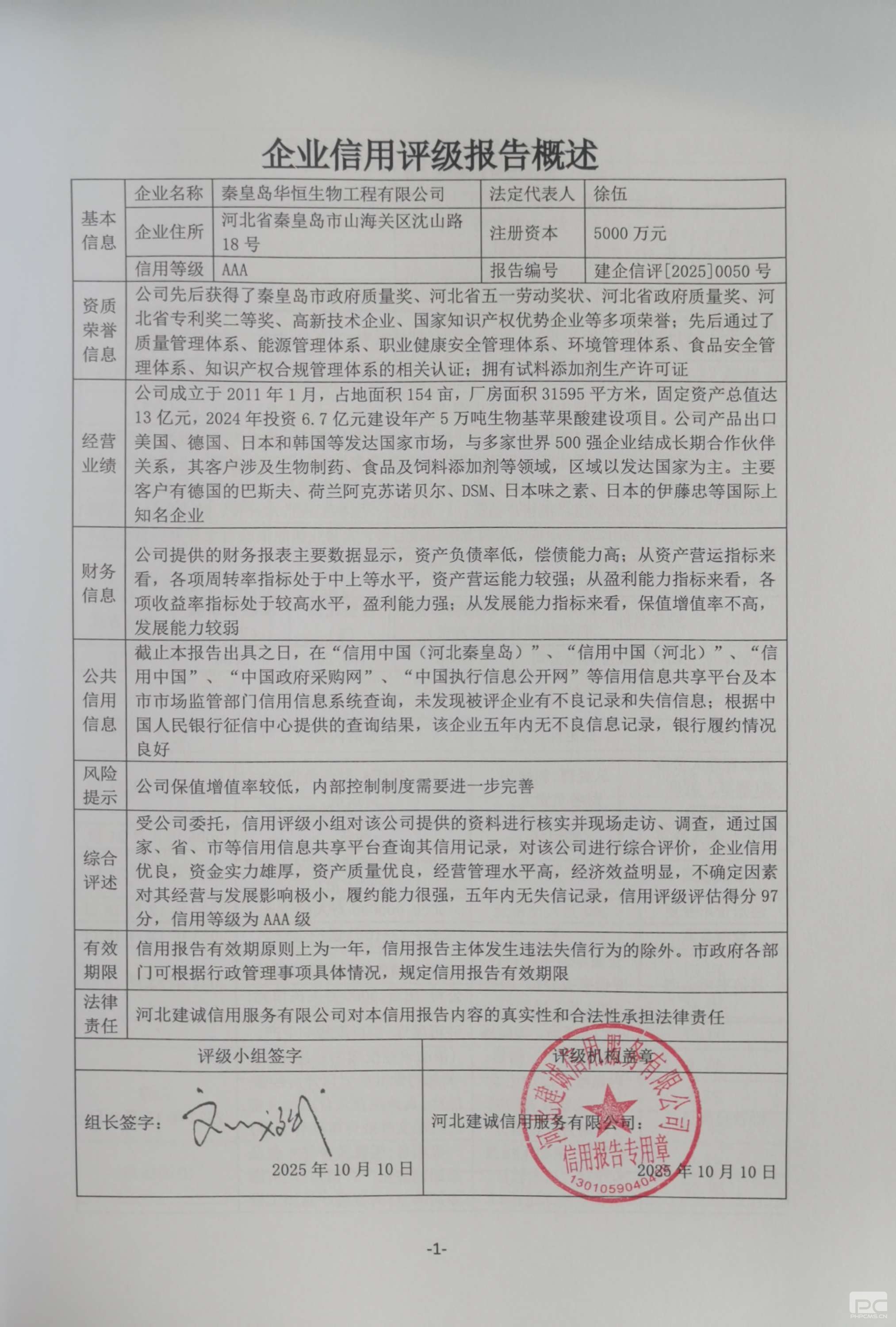 20250050秦皇岛华恒生物工程有限公司